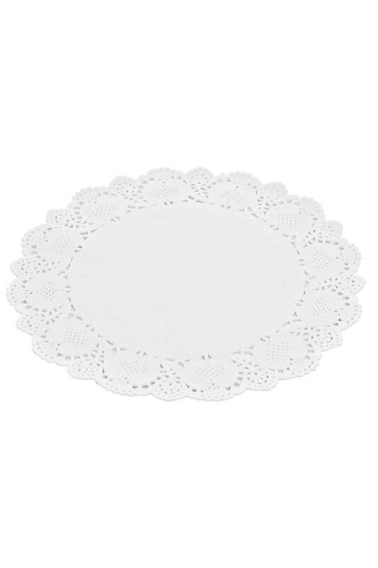• 26 cm çapında yuvarlak beyaz dantel kağıt.