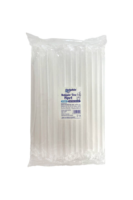 *Dolphin Bubble Tea pipet 22 cm uzunluğunda, 12mm çapında, Bubble tea içeceklerin içimine uygun geniş çaplı kalın, plastik, tek kullanımlık pipettir.*Bubble Tea Pipet, soğuk çay ve diğer içeceklerin büyük boy bardakta kullanılması uygundur.*Bir pakette 50 adet ve kolide 50 paket bulunmaktadır.