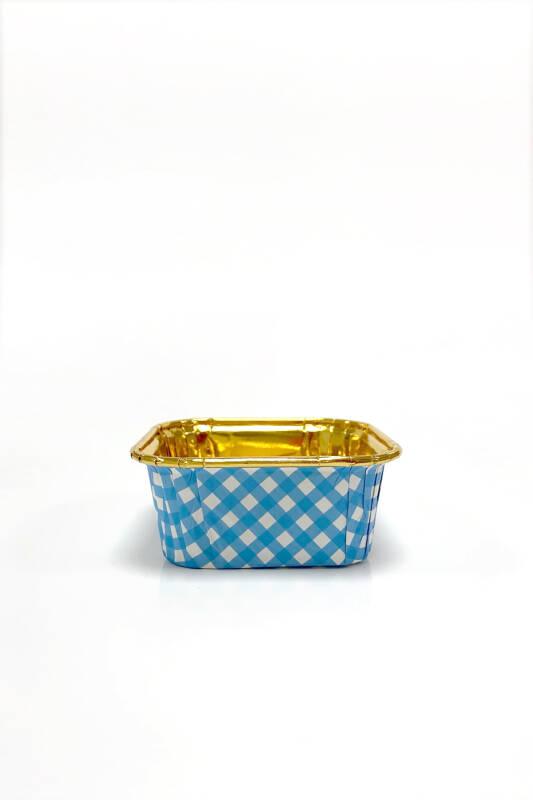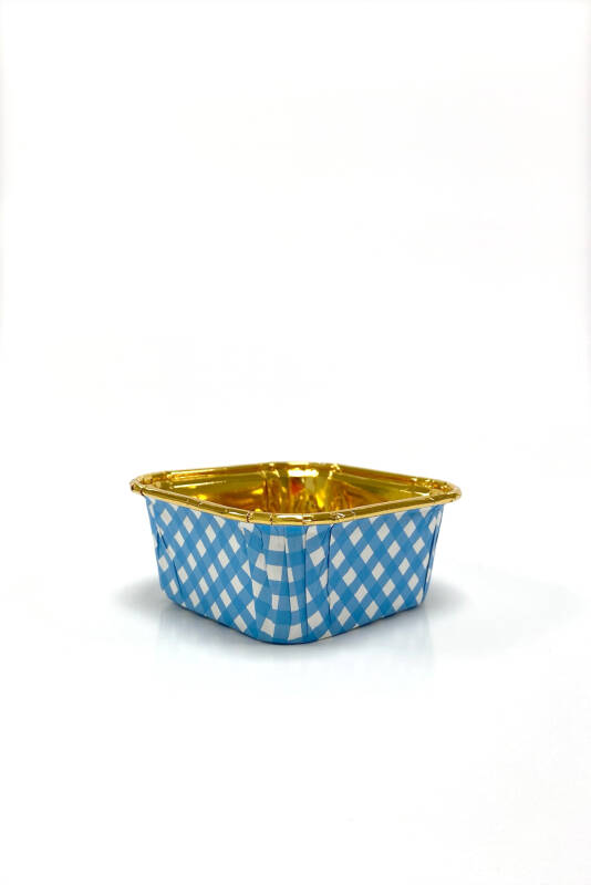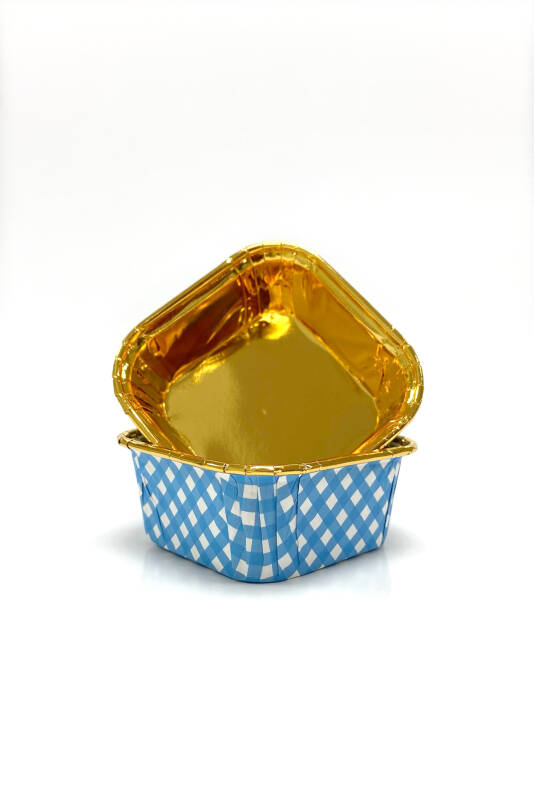 Dolphin Muffin Kek Kapsülü Kare Pötikare Mavi-Altın 25'li