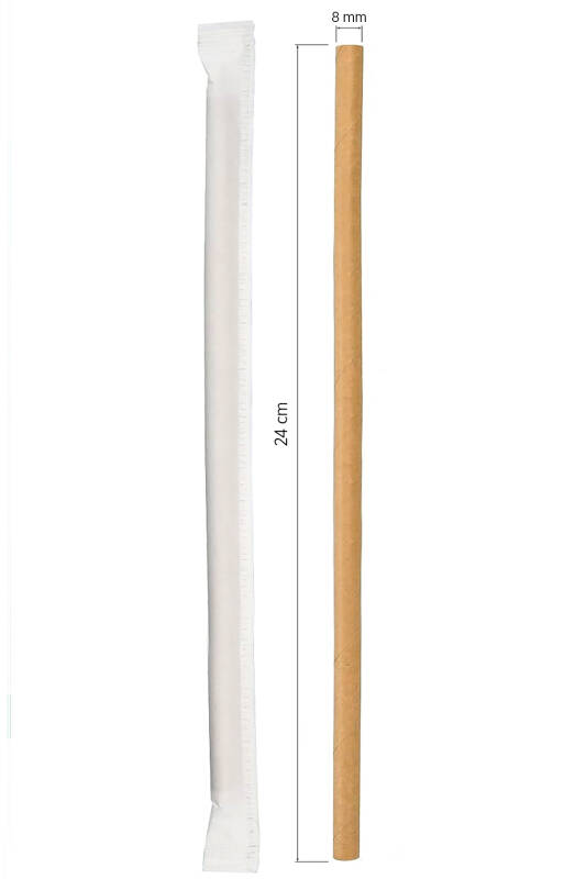 Roll-Up Doğa dostu serisinden kağıt pipet 8 mm çapında, 24 cm uzunluğunda, tek kullanımlıktır. Naturel kraft kağıttan üretilmiş olup Compostable ve Biodegradable özelliikte Sargılı kağıt pipettir.Naturel kraft kağıt pipetlerin her biri tek tek kağıt ambalaja sarılı özelliği sayesinde toplu mekanlarda hijyenik olarak kullanım için idealdir.Tek tek pakete sarılı özelliği sayesinde toplu mekanlarda hijyenik olarak kullanım için idealdirKağıt pipetler kompostlanabilir ve biyobozunur özelliği ile doğaya bırakıldığında normal geri dönüşüm ortamlarında 30 ile 60 gün içerisinde parçalanırlar. Doğa dostu ürünlerdir.Cafe ve restaurant gibi işletmelerde profesyonel olarak, Partilerde, doğum günlerinde, piknik gibi organizasyonlarda kullanımı uygundur.