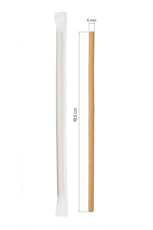 Roll-Up Kraft Kağıt Pipet Kağıt Sargılı 6mm x 19,5cm - 100 Adet