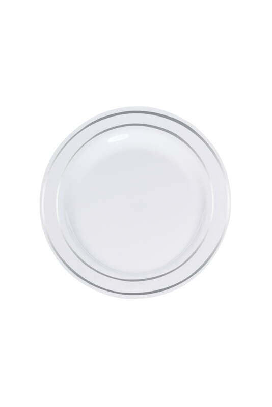 19cm çapında, orta boy, porselen görünümlü lüks plastik tabak. Gümüş çerçeveli, büyük, dayanıklı plastik tabak, davet ve organizasyonlarınız için şık bir prezantasyon sağlar.Parti ve Doğum Günlerinize renk katın.Materyal:Plastik, Paket: 6 Adet,Parti,Doğum Günü ürünleri
