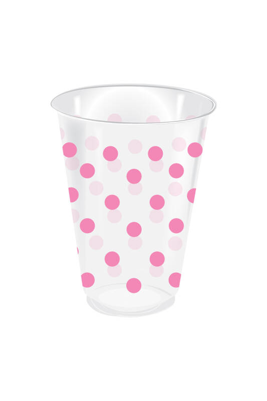 Roll-Up Plastik Bardak Pembe Puantiyeli Şeffaf 250cc 25 Adet